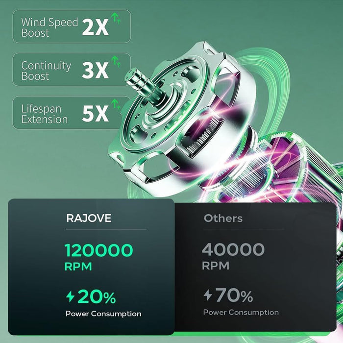 - Motor sin escobillas de alta velocidad (hasta 110.000 RPM): Ofrece una limpieza potente y eficiente.