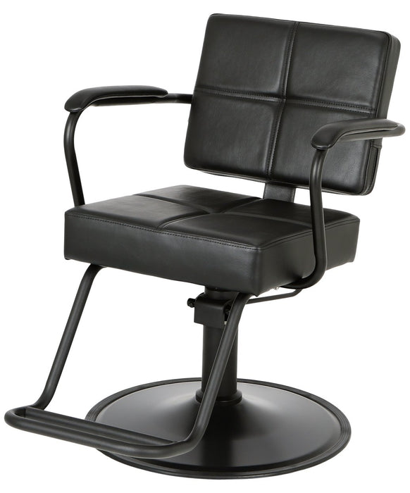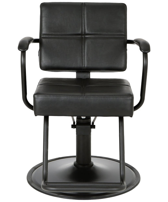 Built for the demands of a busy salon, the Globe Styling Chair offers exceptional durability with a sleek, modern aesthetic. Its robust black metal frame complements the easy-to-clean open seating and padded arms. Designed for client comfort, this chair features an extra-wide seat and generous footrest. The Globe Styling Chair comes standard with a black base and a reassuring 2-year warranty on the hydraulic pump, making it a stylish and reliable choice for any salon design.