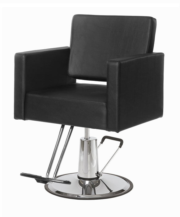 The Sculpted Styling Chair offers a compelling blend of strength, style, and luxurious comfort. This modern, square salon chair features a durable steel frame and a supportive one-piece foam cushion, creating a sturdy and undeniably chic aesthetic. Complete with a T-Bar Footrest and the option of a flat square or flat round hydraulic pump, this European-inspired design is pictured with a standard 23-inch circle base and silver footrest.